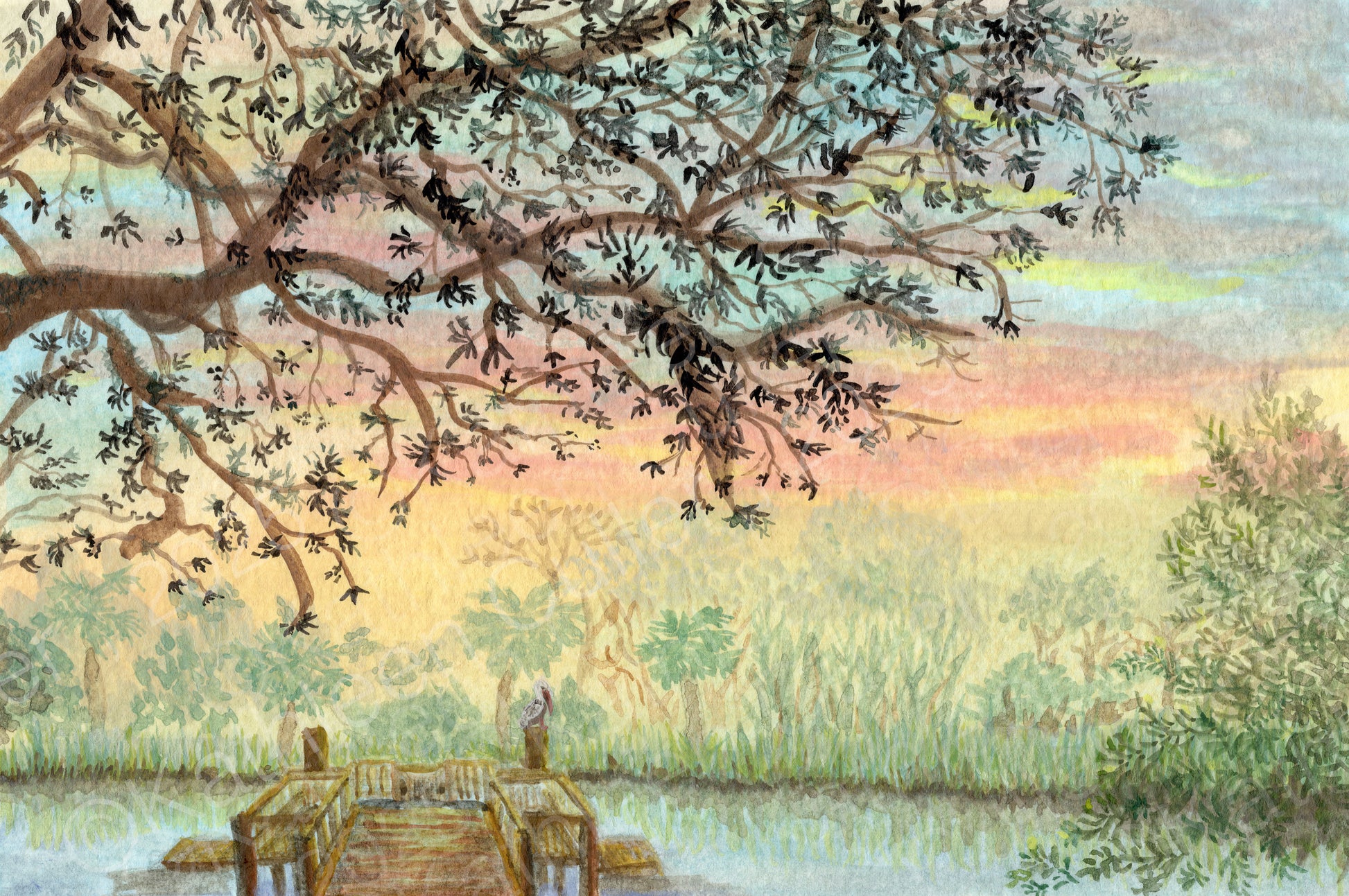 Lowcountry Sunrise - Giclee Art Print. Fine Art Print of 'Lowcountry Sunrise’ watercolor © Kathleen Culler, 2025